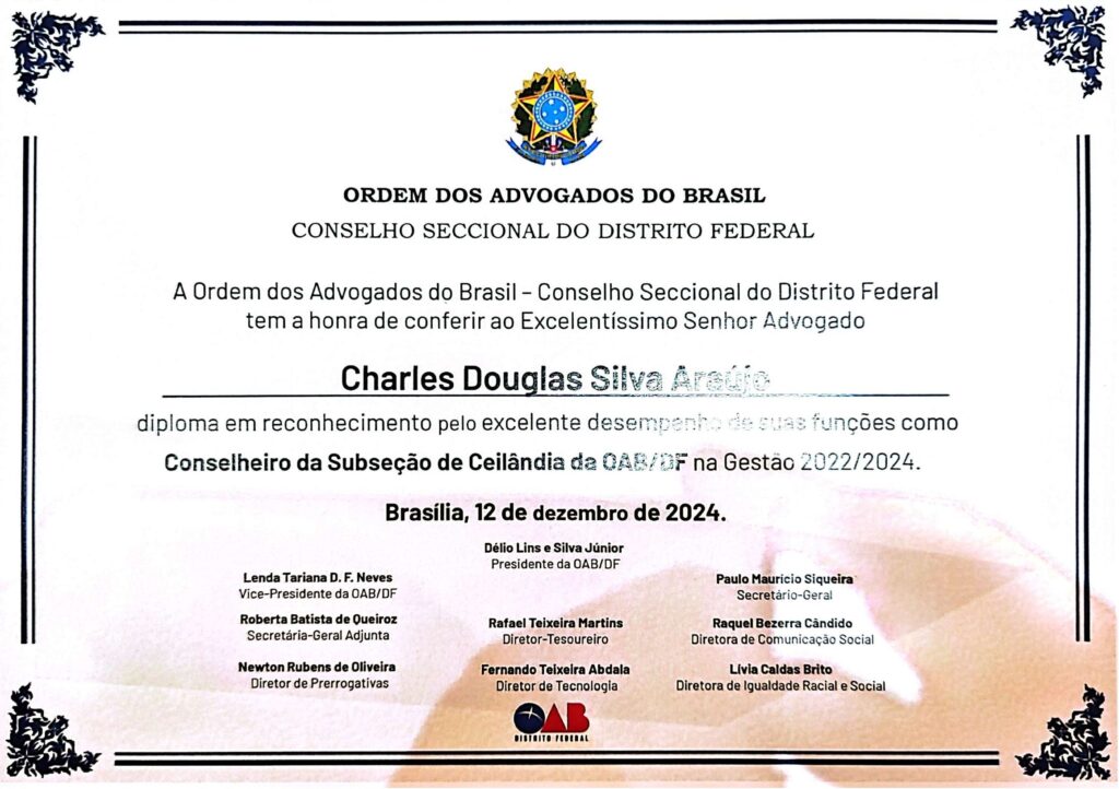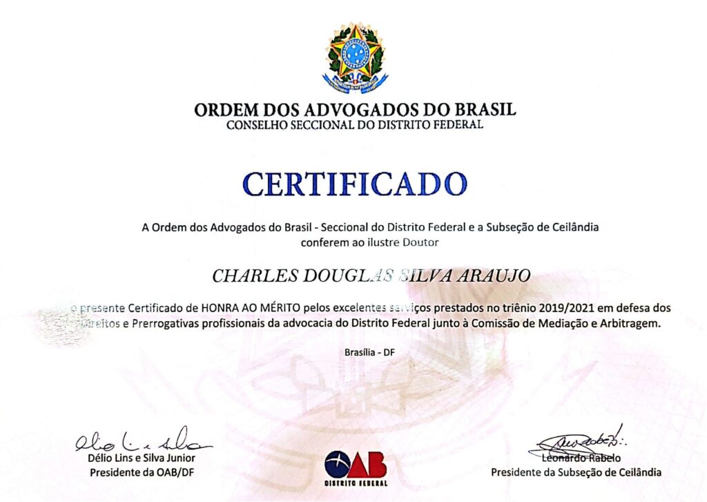 Advogado, Presidente da Comissão de Arbitragem e Mediação da Subseção de Ceilândia /DF e Presidente da Subcomissão de Outros Métodos Adequados de Solução de Conflitos da OAB/DF triênio 2019/2021, Presidente da Comissão Especial de Direito Militar da OAB/DF triênio 2022/2024. Pós-graduado em Negociação, Mediação e Arbitragem pela DALMASS e em Mediação de Conflitos e Arbitragem pela Faculdade Unyleya, Pós-graduado Especialista em Direito Militar e Pós-graduando em Direito Internacional Imigração e migração pela faculdade EBPOS. Foi Avaliador na Competição de Mediação e Arbitragem promovida pela ESA/GO. Certificado de participação no Curso de prática da Arbitragem pela AIR Educação e Curso Advogando na Arbitragem pela ESA /DF, atua junto aos Tribunais Superiores, Justiça Federal, Ministério da Justiça, Receita Federal e órgãos da Administração Pública, com expertise em diversas áreas do Direito.